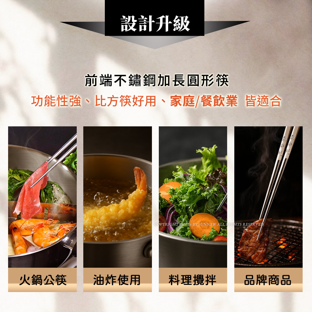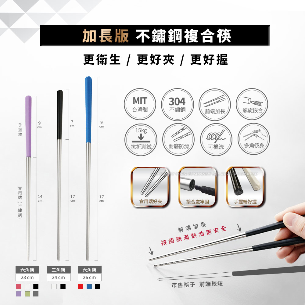 Free 加長版不銹鋼複合筷六角23cm(黑/白/綠/紫/灰)