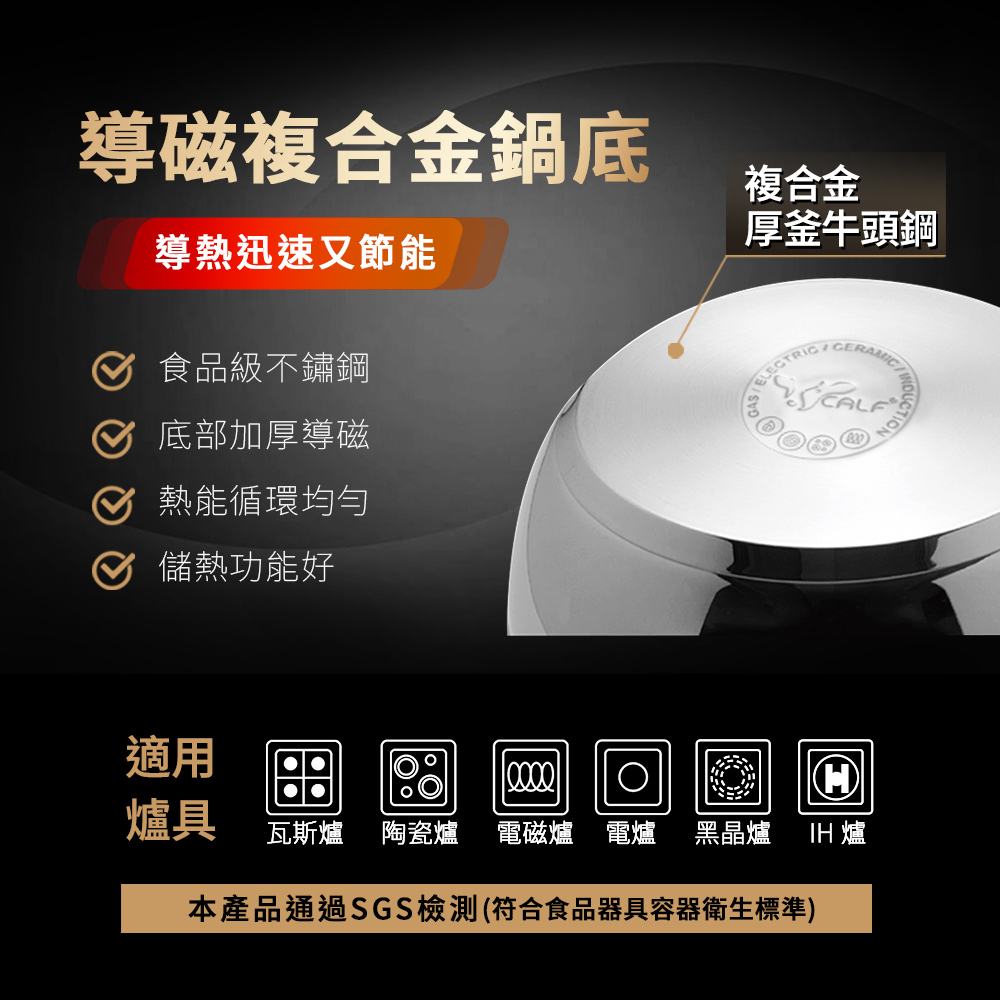 鍋身:304不銹鋼(全包導磁複底)+電木