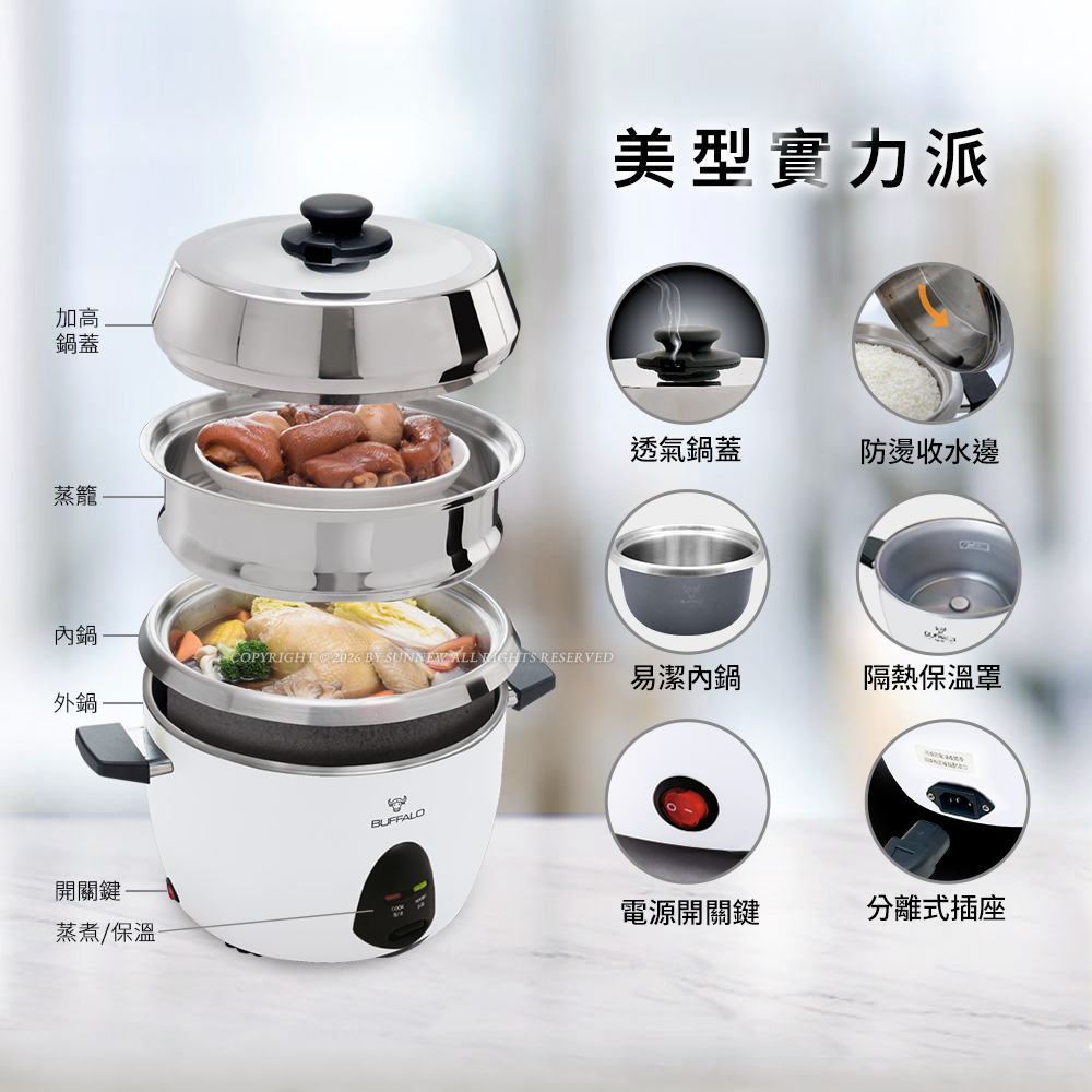 內鍋:內層複合牛頭鋼+外層易潔塗層