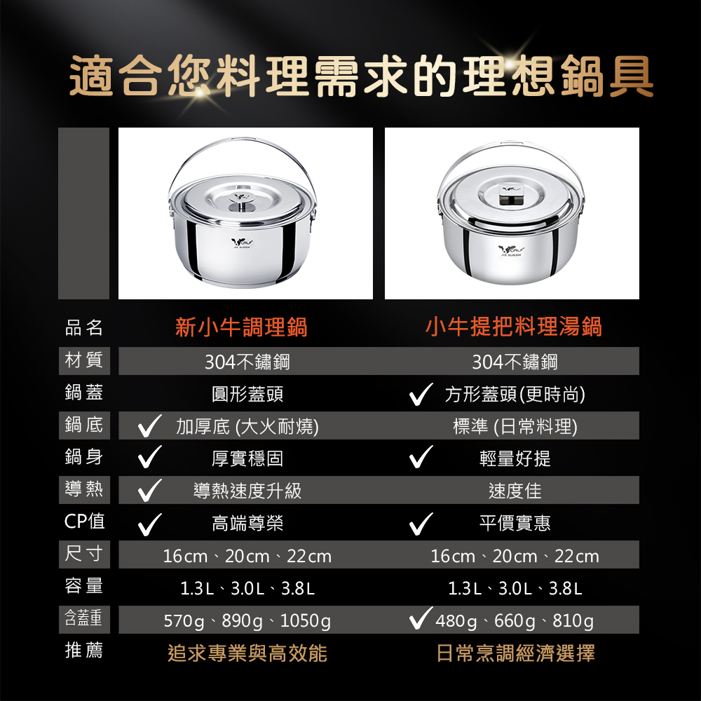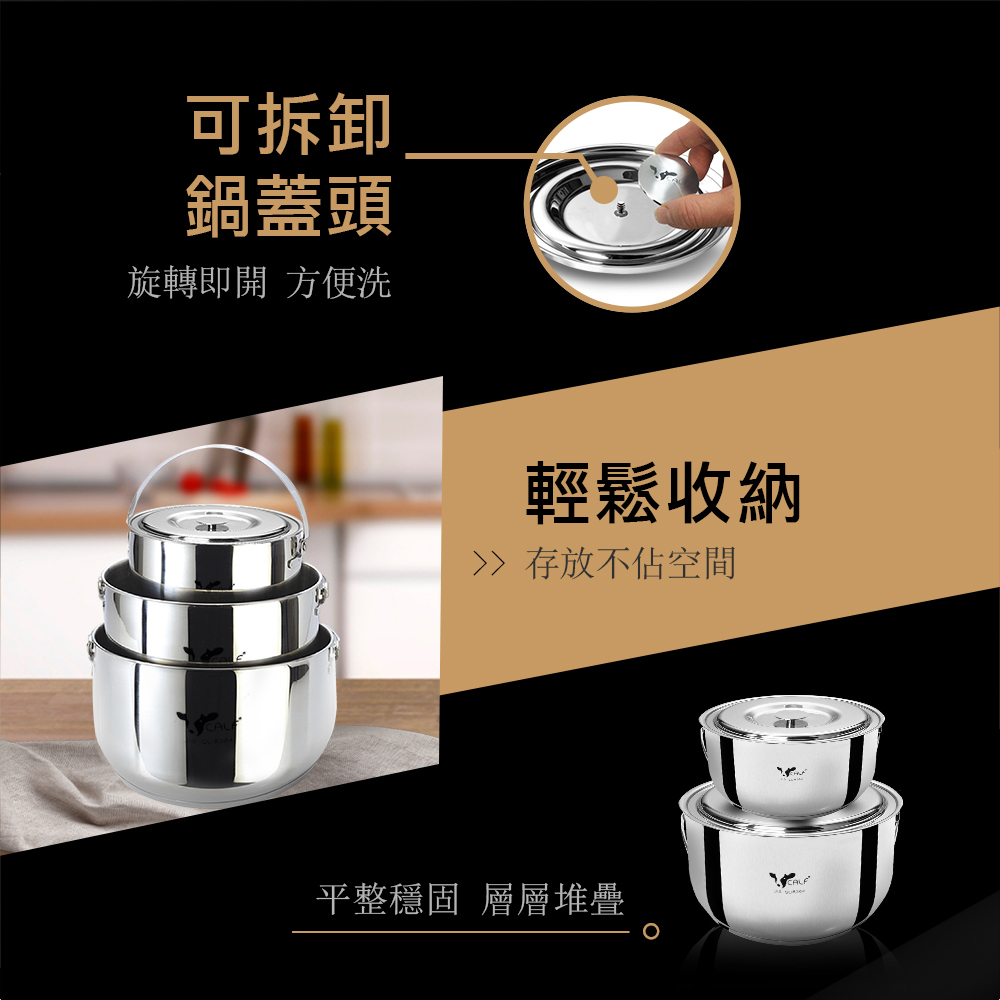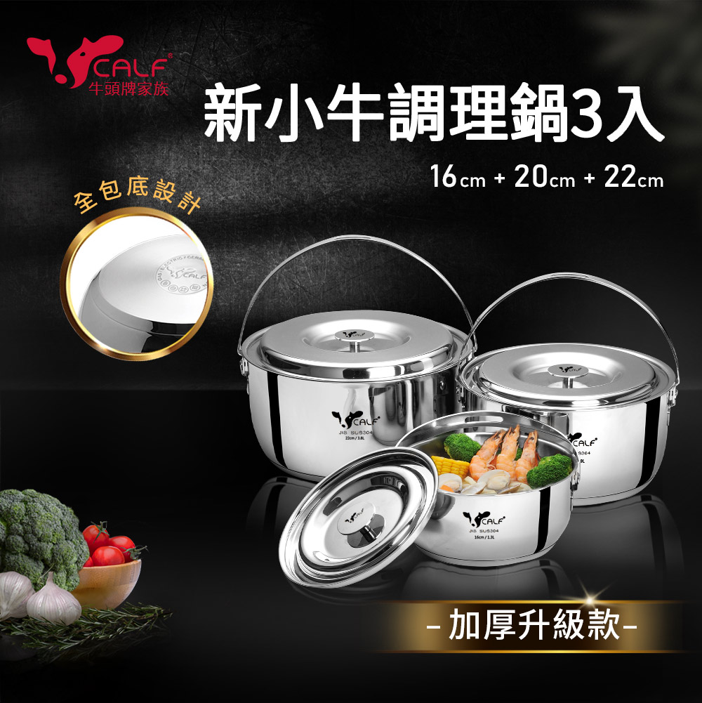小牛調理鍋3入(16+20+22)CM,加厚底